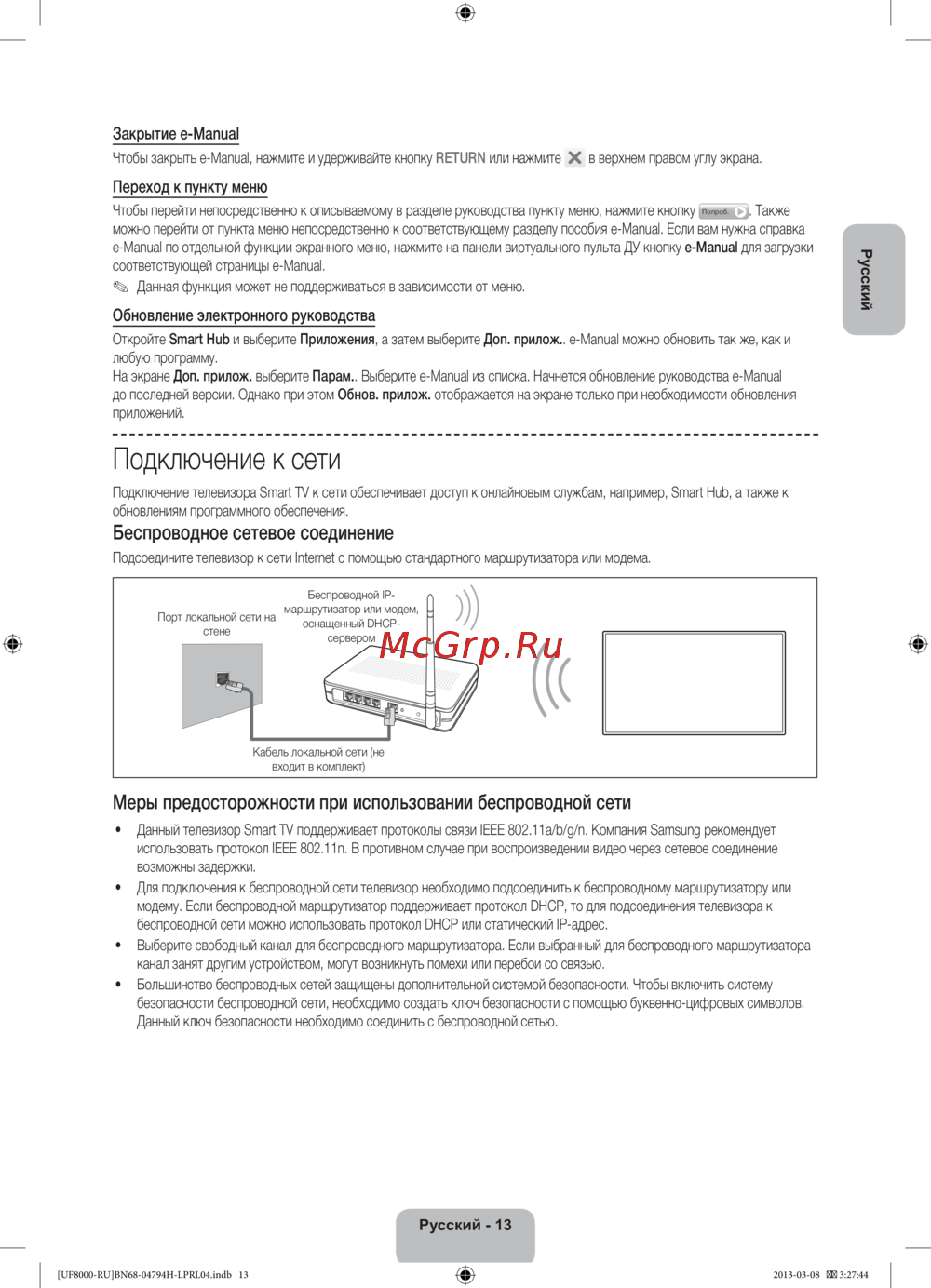 - Меры предосторожности при использовании беспроводной сети p.13