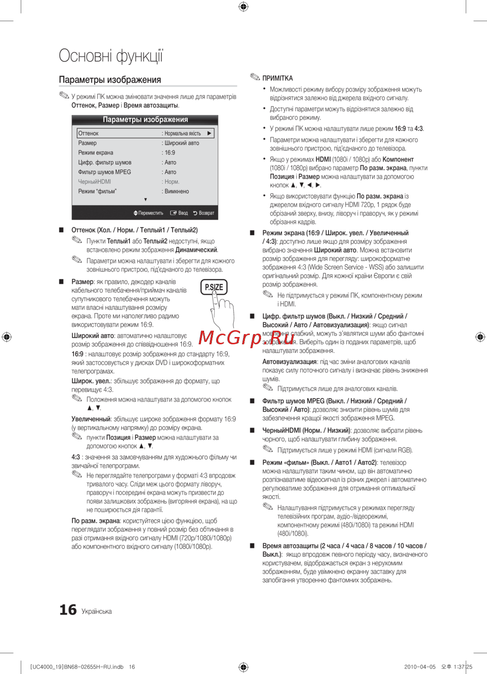 У режимі ПК можна налаштувати лише режим 16:9 та 4:3.