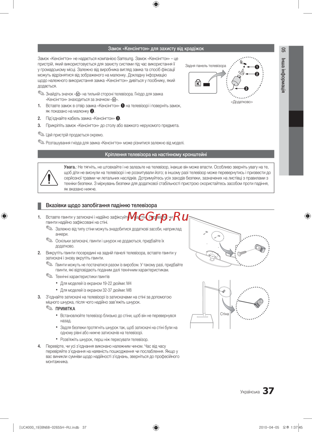 ![Samsung UE22C4000PW [121/169] Вказівки щодо запобігання падінню телевізора](/views2/1000902/page121/bg79.png)