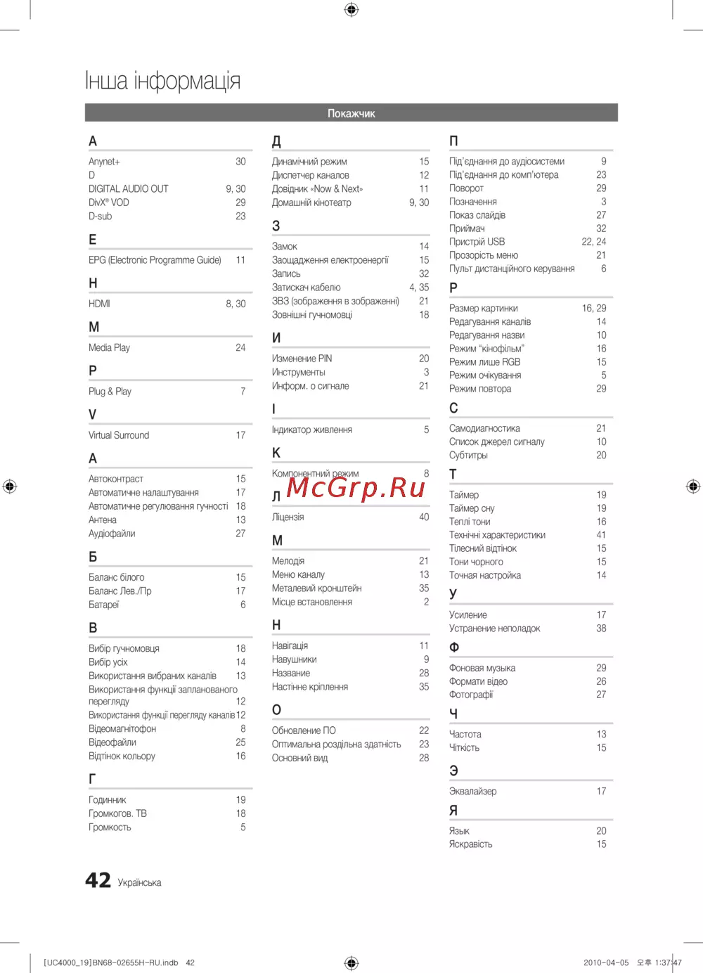 ![Samsung UE22C4000PW [126/169] Покажчик](/views2/1000902/page126/bg7e.png)