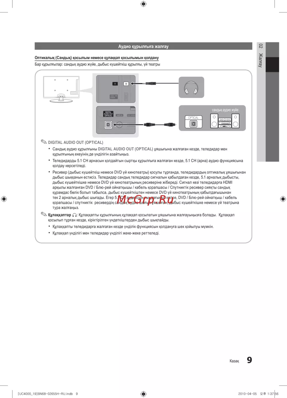 - Аудио құрылғыға жалғау p.135