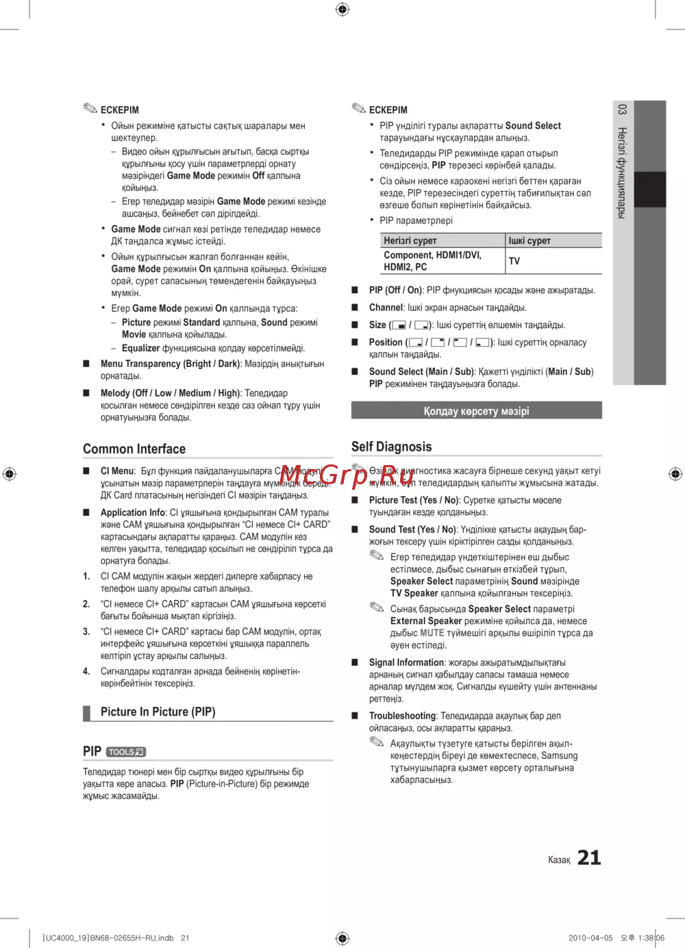 - Аналогты кабель телемәтін функциясы p.160