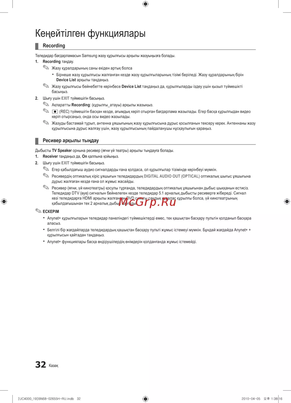- Anynet құрылғыларының бірінен біріне өту p.157