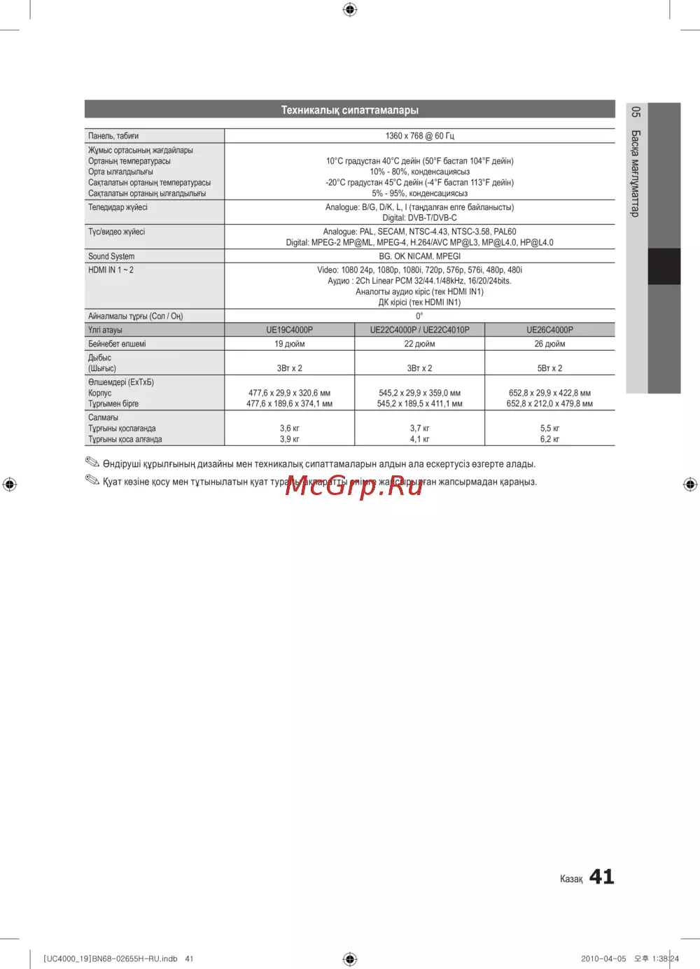![Samsung UE22C4000PW [167/169] Өндіруші құрылғының дизайны мен техникалық сипаттамаларын алдын ала ескертусіз өзгерте алады](/views2/1000902/page167/bga7.png)
