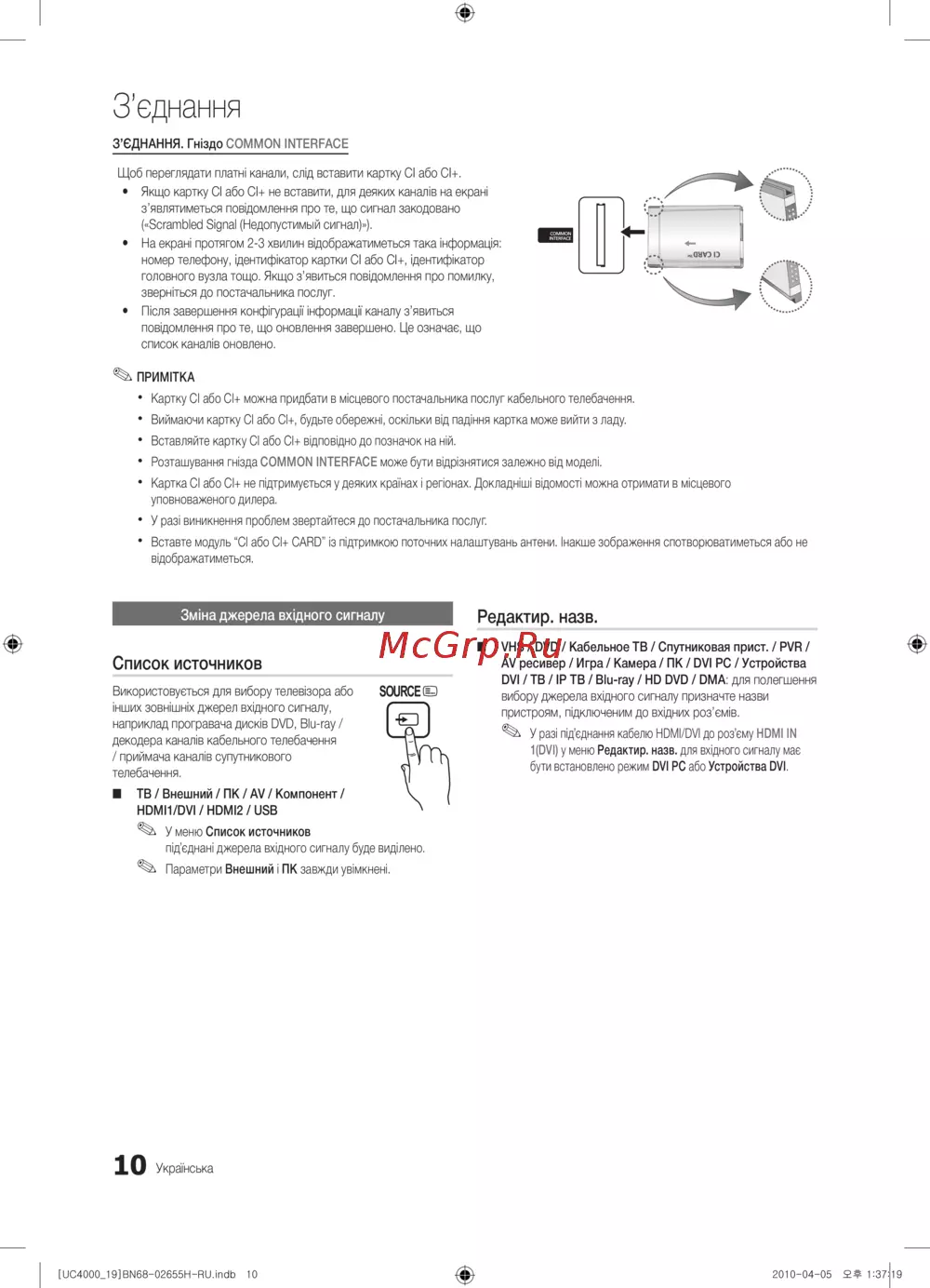 З’ЄДНАННЯ. Гніздо COMMON INTERFACE
