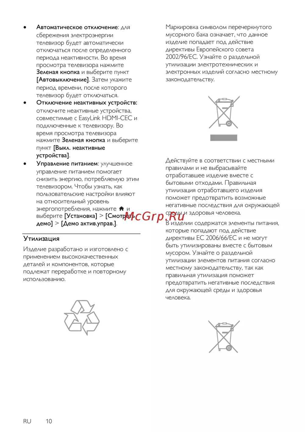 Philips 32PFL3208T/60 — энергоэффективные функции телевизора и правильная утилизация [10/91]