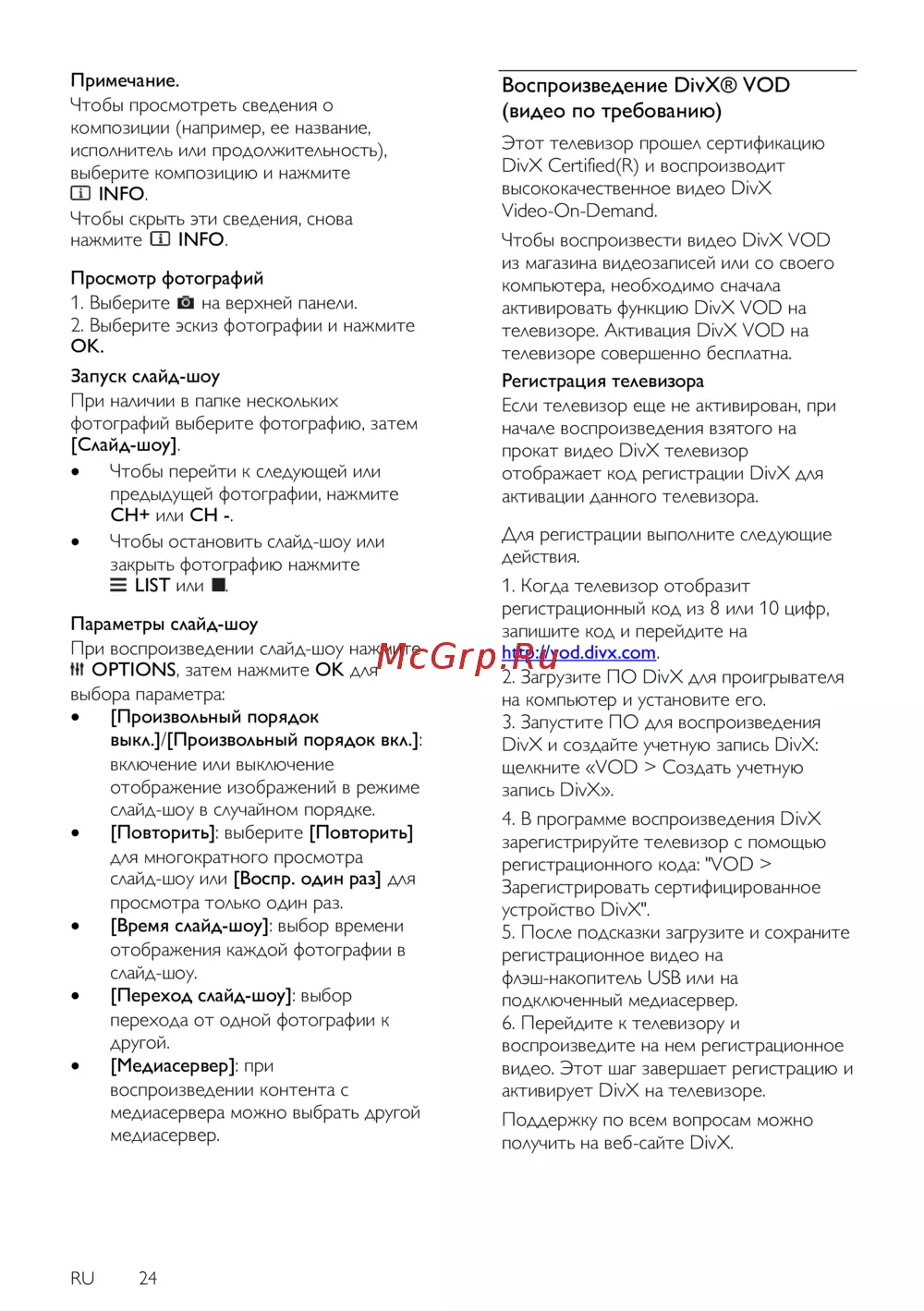 ![Philips 32PFL3208T/60 [24/91] Воспроизведение divx vod видео по требованию](/views2/1023923/page24/bg18.png)