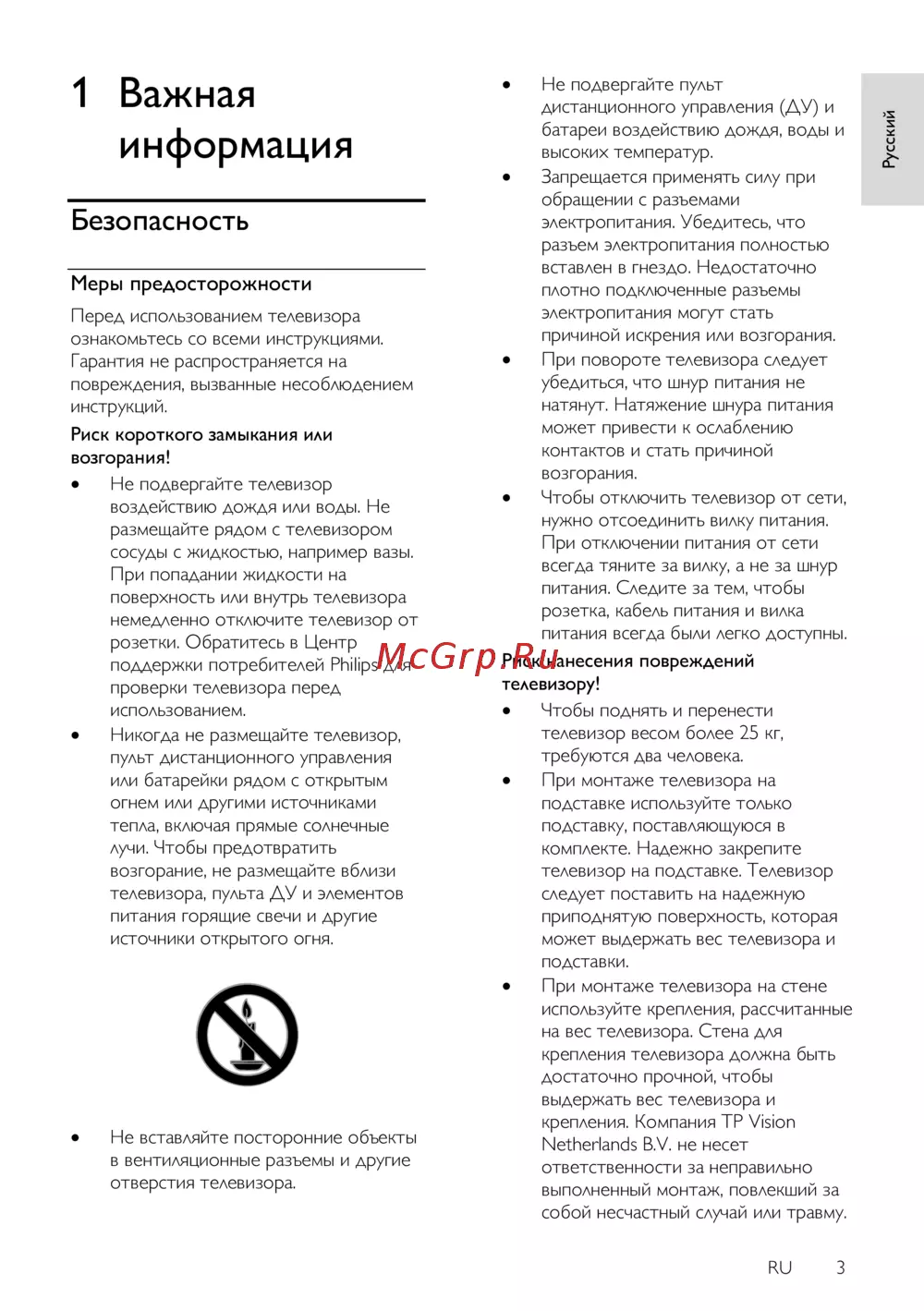 Philips 32PFL3208T/60 — важные меры предосторожности при использовании телевизора [3/91]