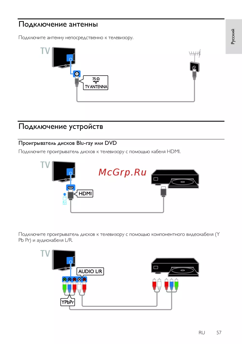 - Подключите проигрыватель дисков к телевизору с помощью кабеля hdmi p.57
