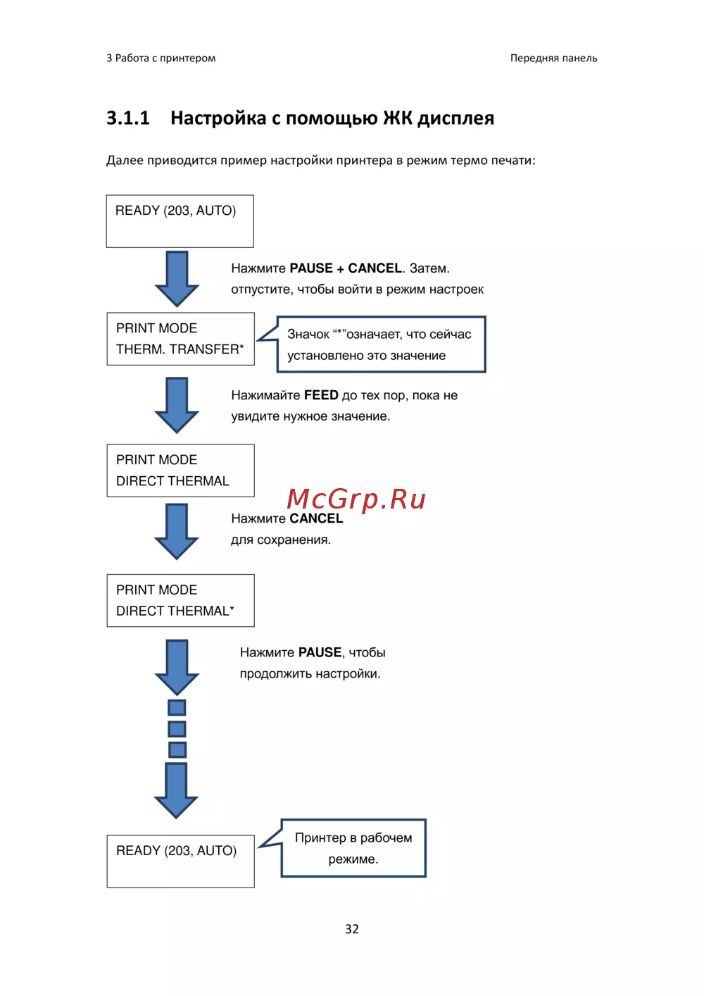 3.1.1 Настройка с помощью ЖК дисплея