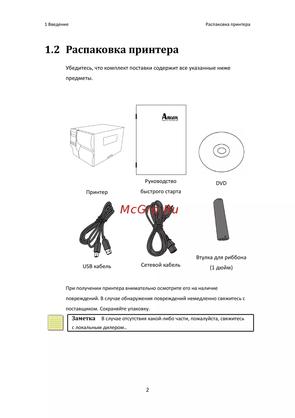 Заметка В случае отсутствия какой-либо части, пожалуйста, свяжитесь