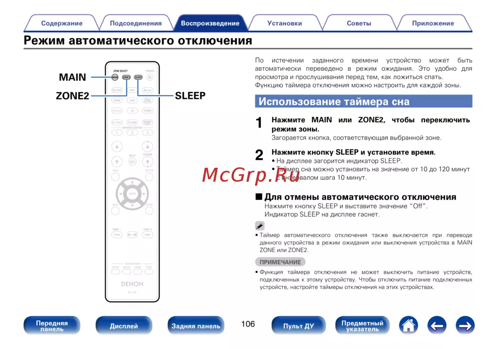 Denon AVR-X2000 Black — советы по настройке таймера сна и автоматического отключения [106/220]