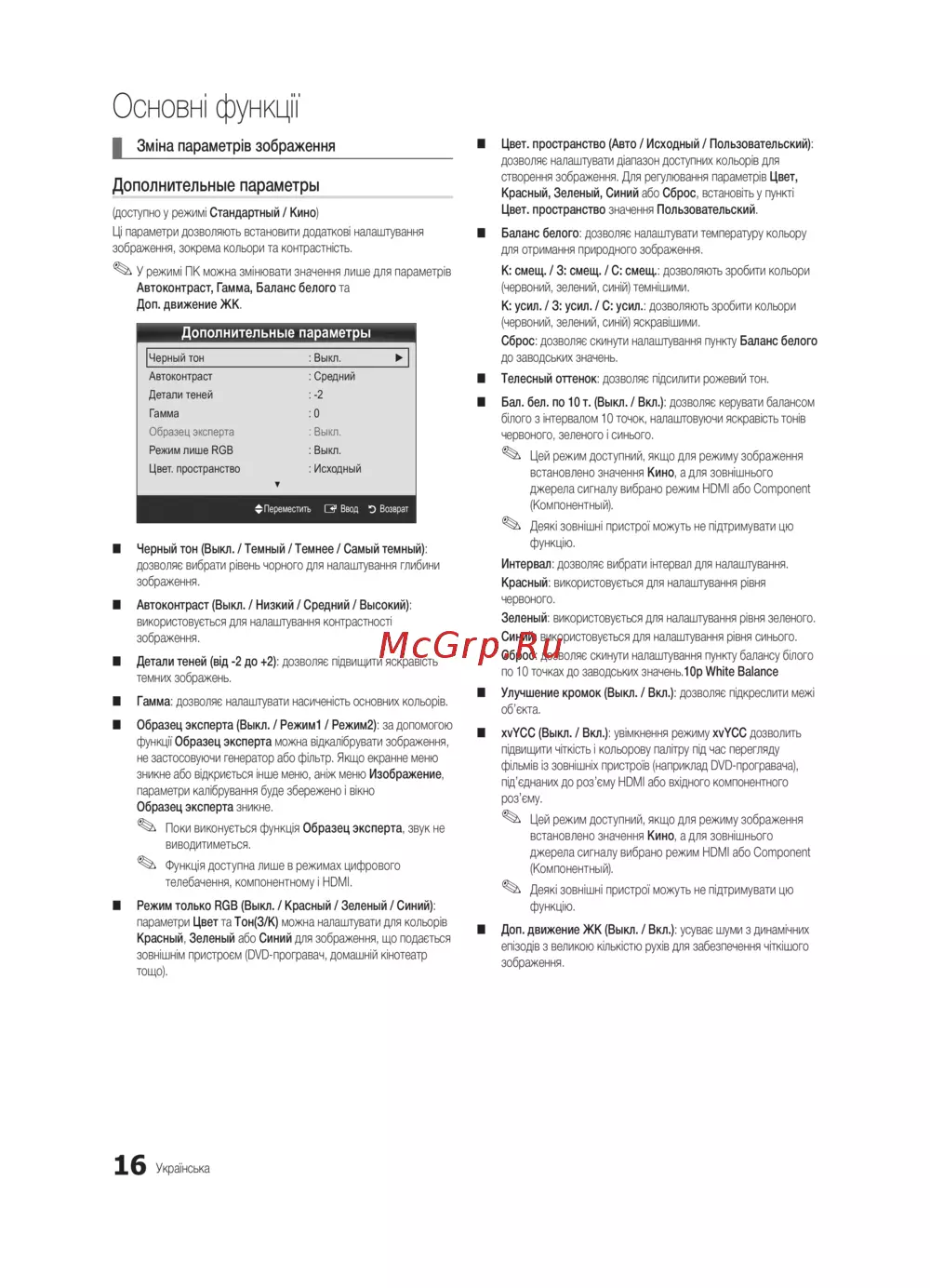 ■ xvYCC (Выкл. / Вкл.): увімкнення режиму xvYCC дозволить