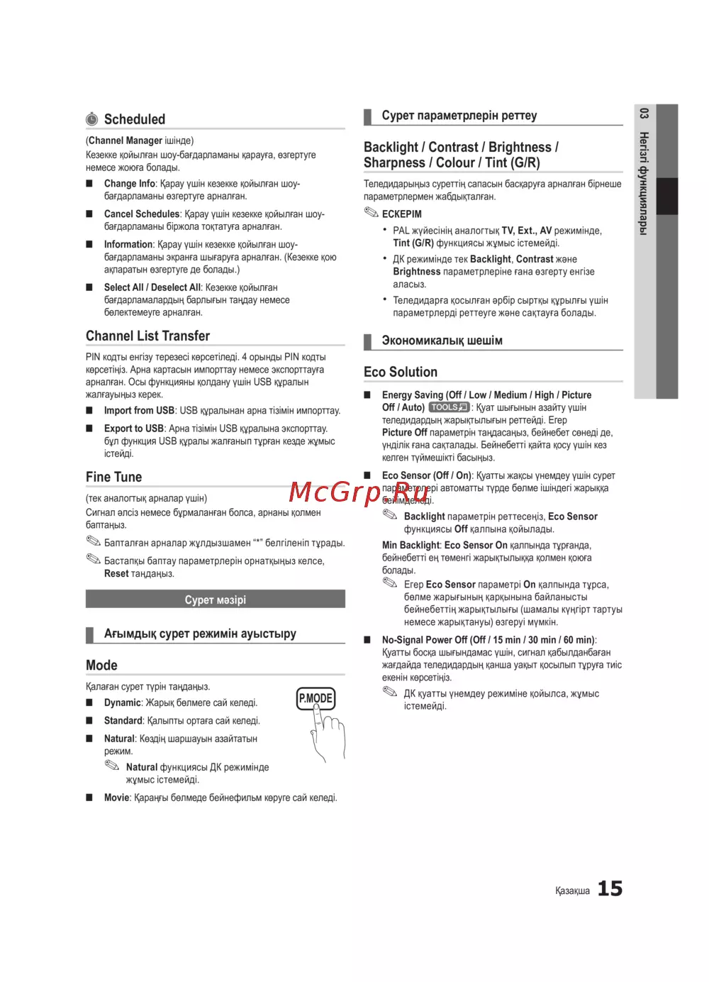 Min Backlight: Eco Sensor On қалпында тұрғанда,