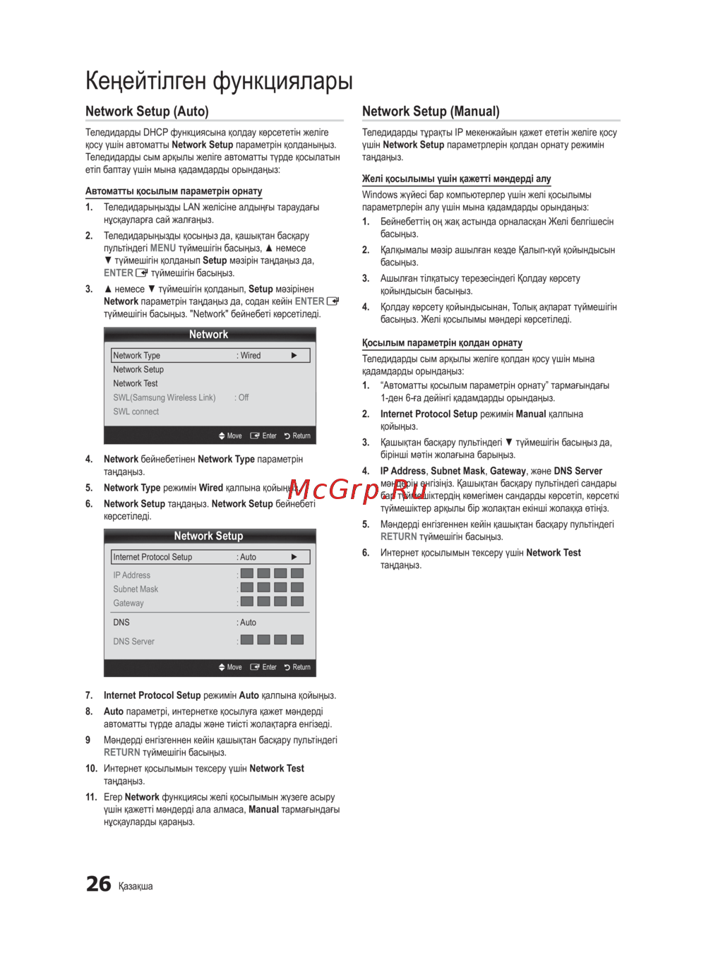 үшін Network Setup параметрлерін қолдан орнату режимін