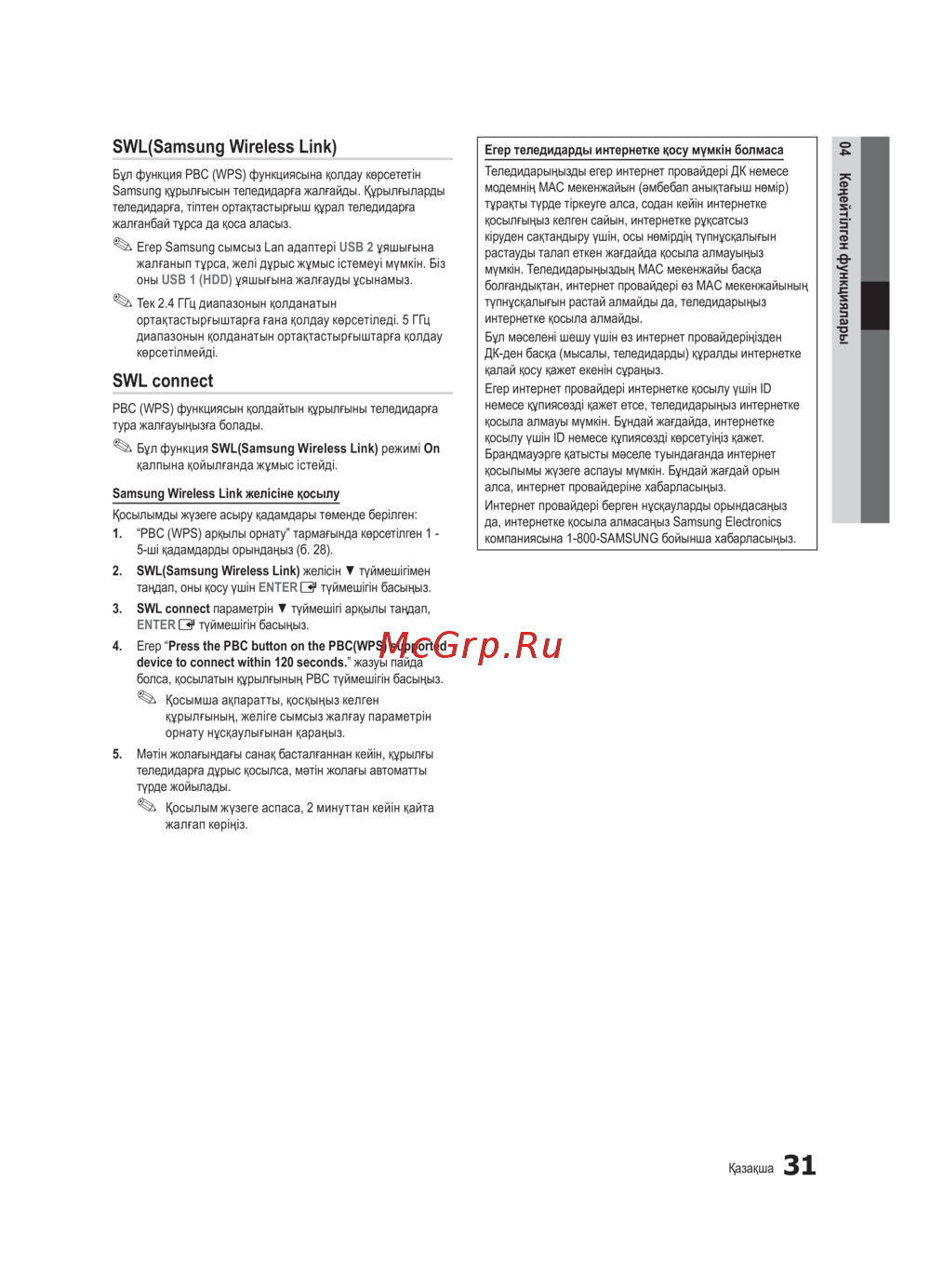Бұл функция SWL(Samsung Wireless Link) режимі On