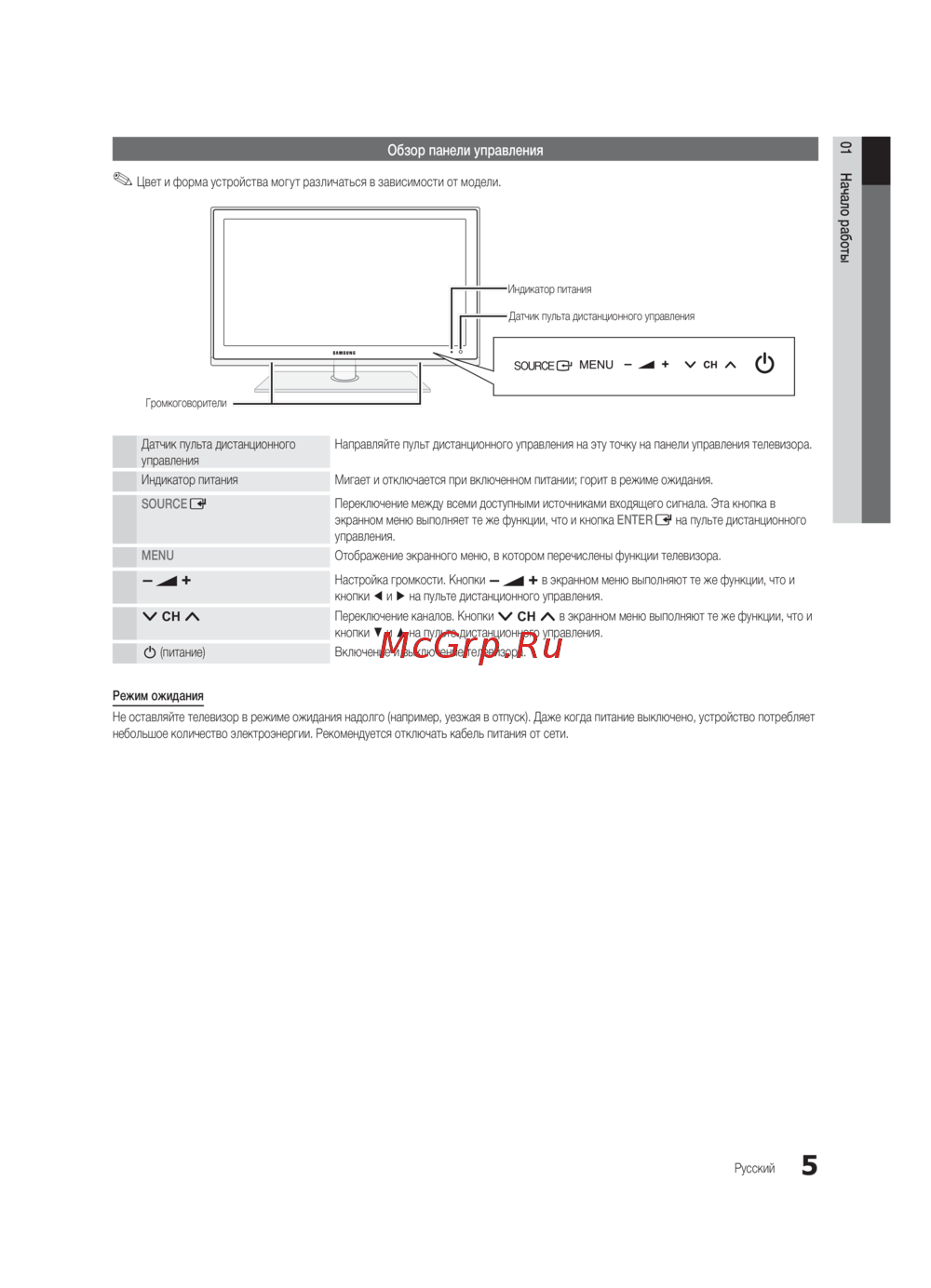 Инструкция по панели управления телевизором: описание кнопок, их функций, настройка громкости, переключение каналов и режима ожидания для экономии энергии.