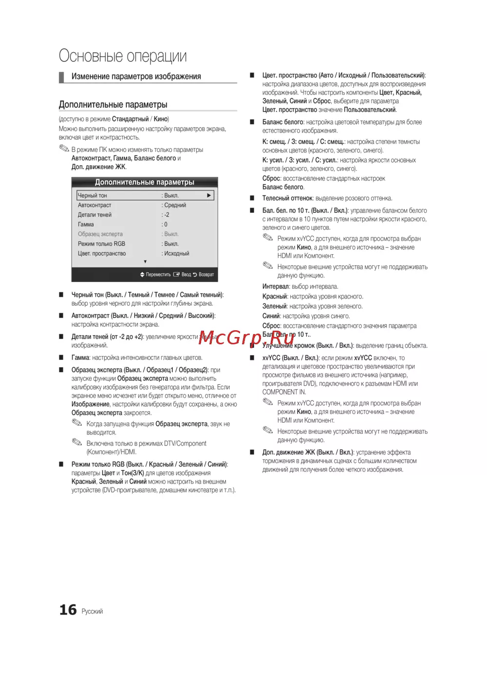 ■ xvYCC (Выкл. / Вкл.): если режим xvYCC включен, то