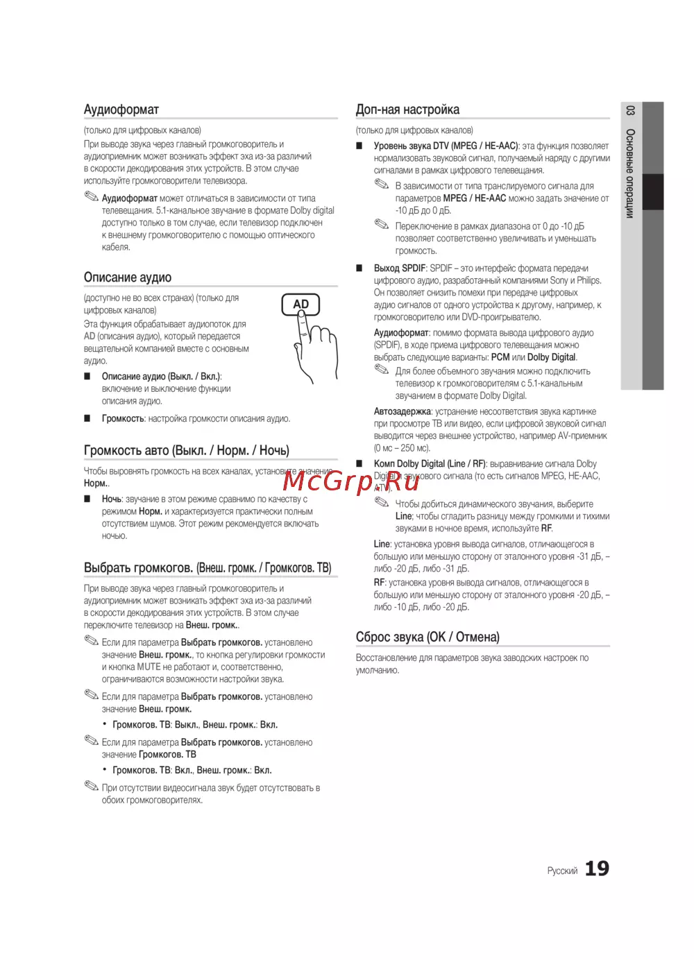 ■ Уровень звука DTV (MPEG / HE-AAC): эта функция позволяет