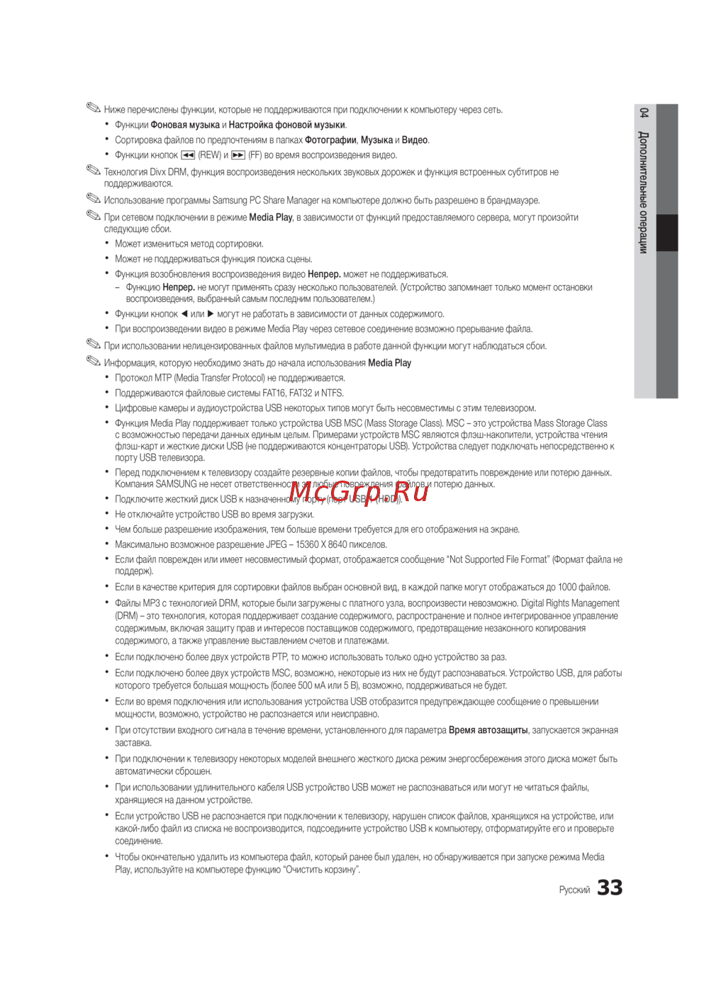 Samsung UE-55C6000RW — ограничения функций Media Play при сетевом подключении к компьютеру [87/216]