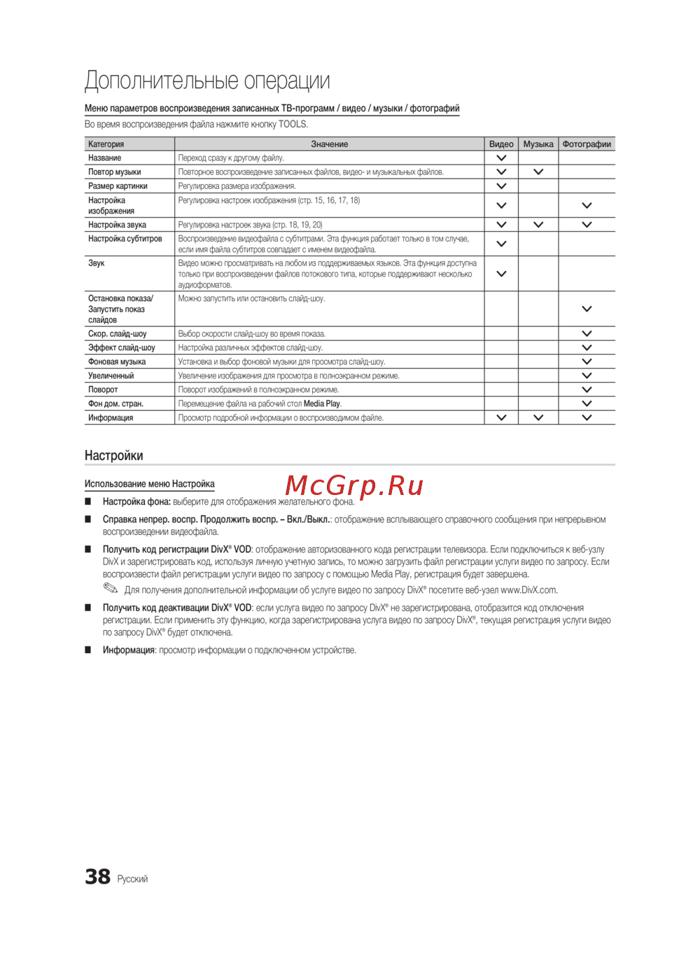 Samsung UE-55C6000RW — управление параметрами воспроизведения медиа: настройка изображения, звука, слайд-шоу и других функций [92/216]
