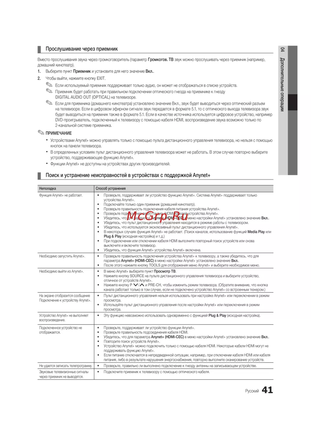 ¦ Поиск и устранение неисправностей в устройствах с поддержкой Anynet+