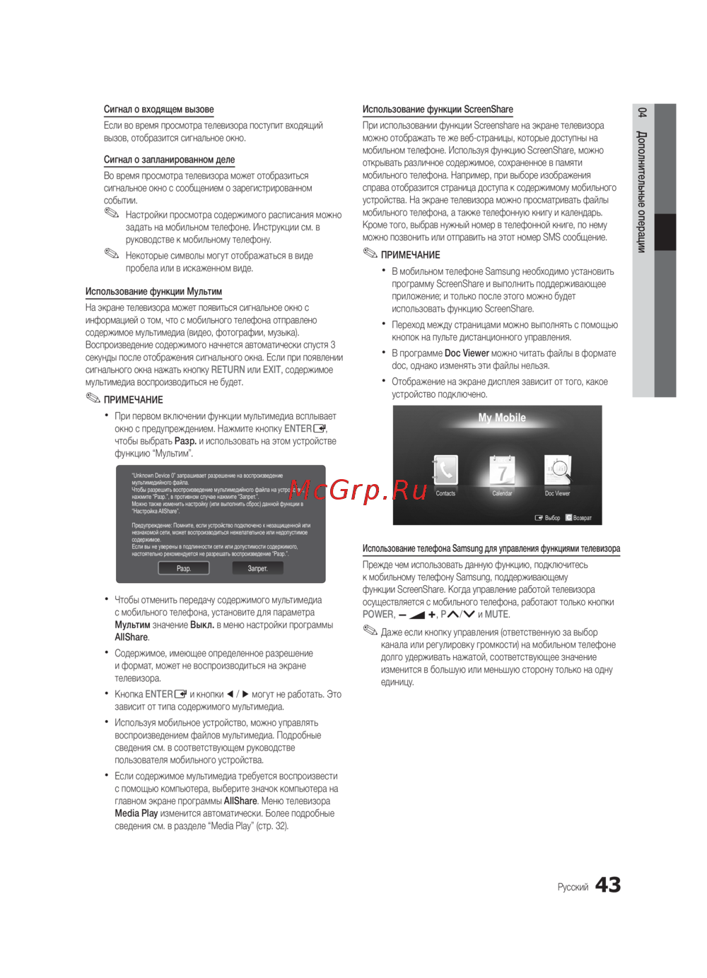 Samsung UE-55C6000RW — интеграция телевизора с мобильными устройствами: функции мультимедиа и ScreenShare [97/216]