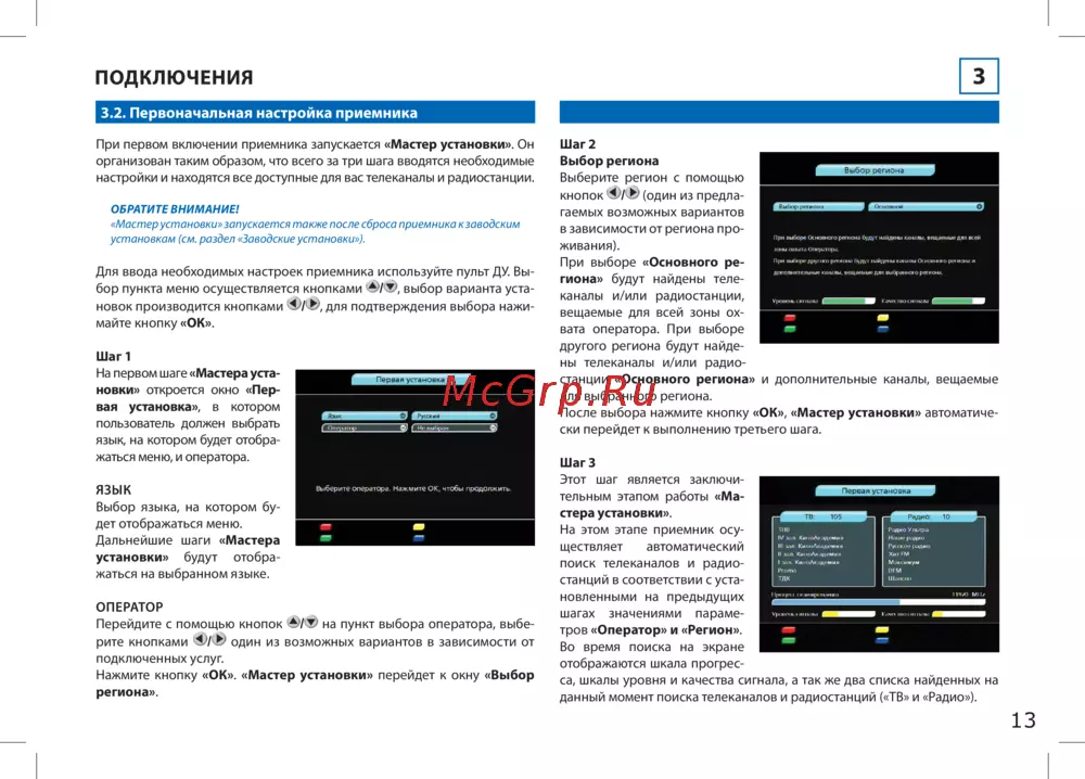 Узнайте, как быстро настроить приемник за три простых шага. Следуйте нашей инструкции для выбора языка, оператора и региона, чтобы найти все доступные каналы.