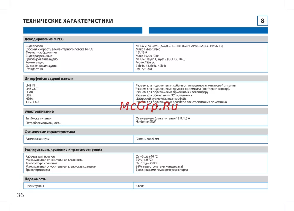 - Технические характеристики p.36