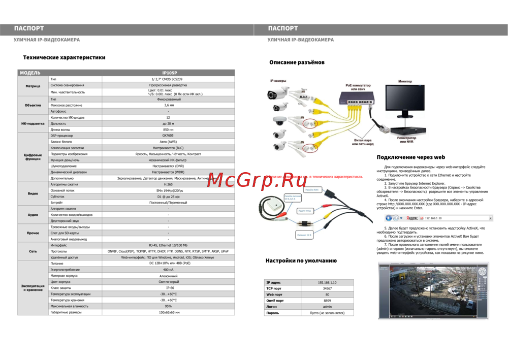Протоколы ONVIF, Cloud(P2P), TCP/IP, HTTP, DHCP, FTP, DDNS, NTP, RTSP, SMTP, ARSP, UPnP