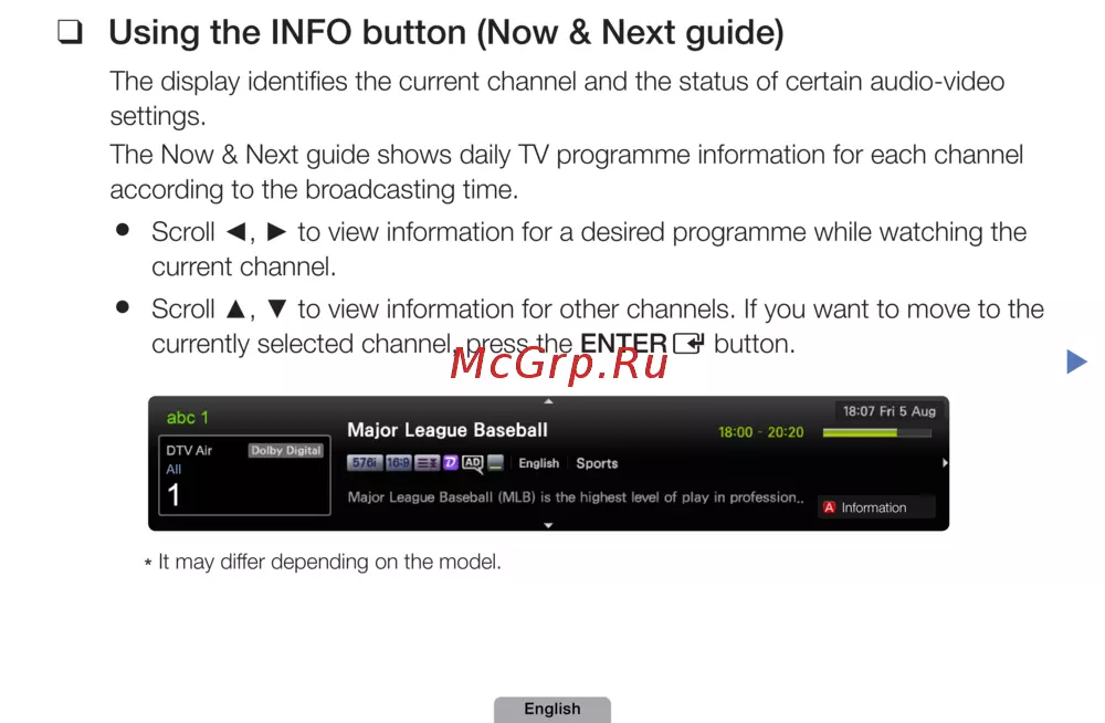 Samsung UE-22D5020 NW [3/191] Using the info button now next guide