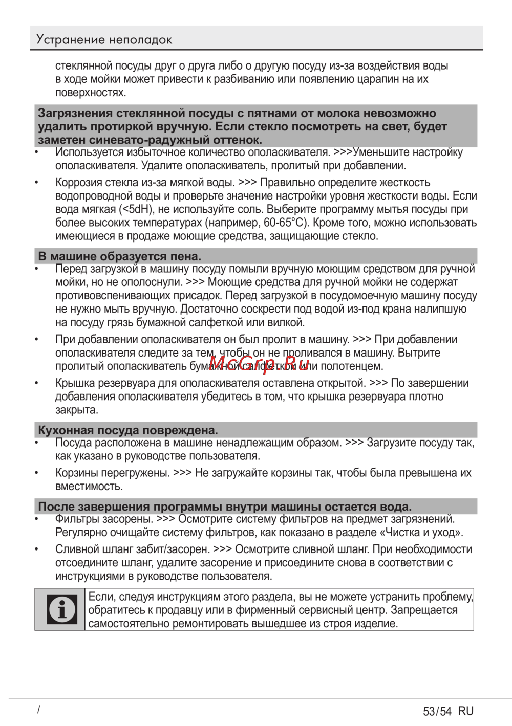 Grundig GNFP5542ADW — устранение неполадок стеклянной посуды в посудомоечной машине [53/54]