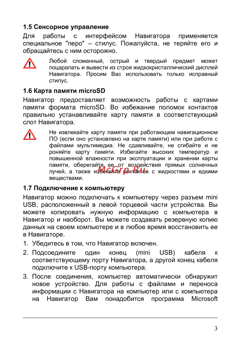 Lexand SI-515 PRO HD — инструкция по эксплуатации навигатора: уход за стилусом, картой памяти и подключению [9/42]
