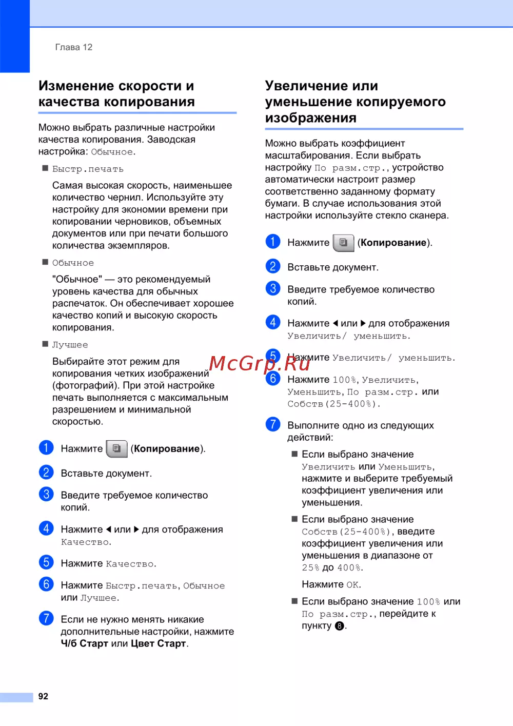 Brother MFC-990CW — управление качеством и скоростью копирования, масштабирование изображений [104/241]