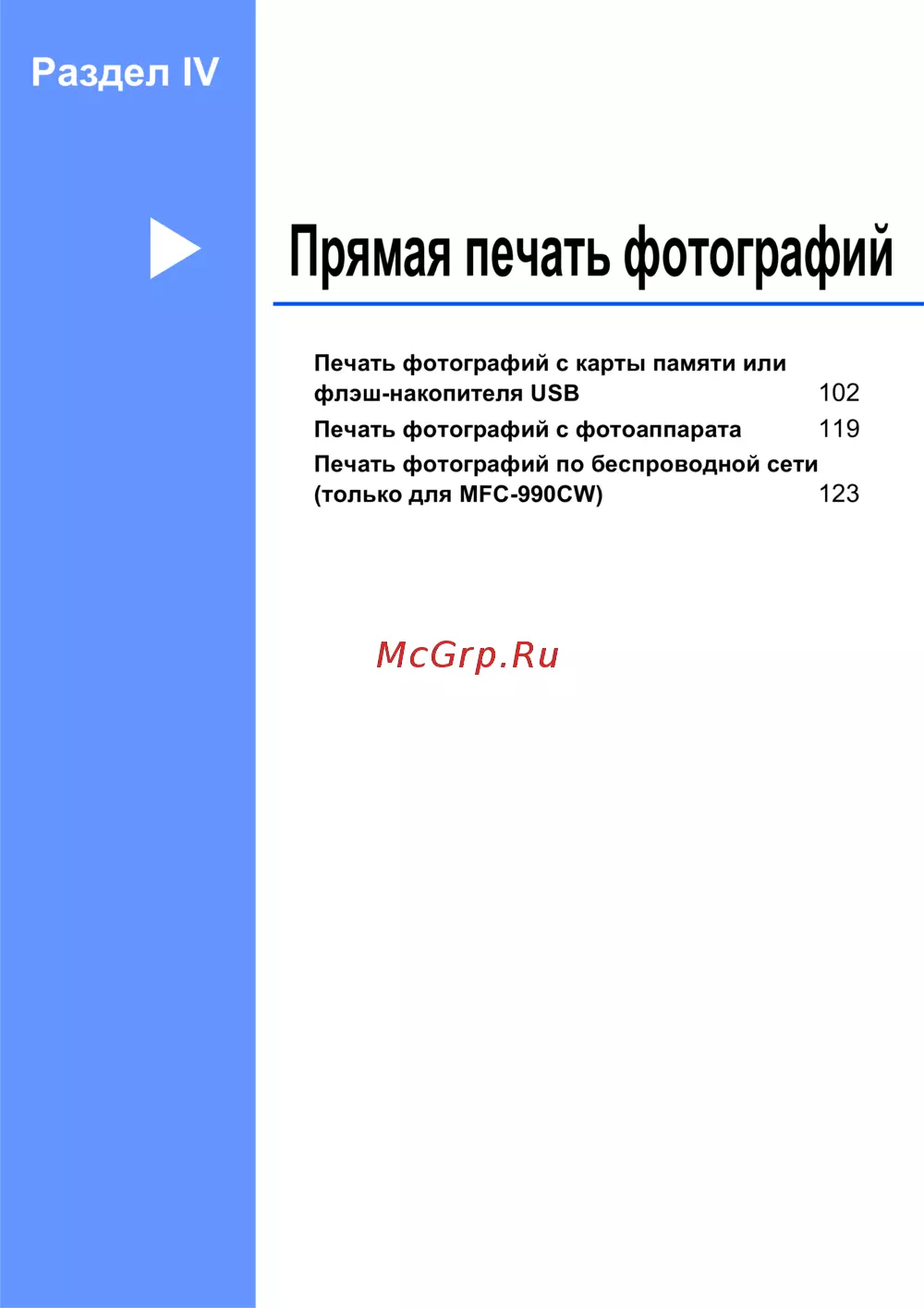 - Печать фотографий по беспроводной сети только для mfc 990cw 123 p.10