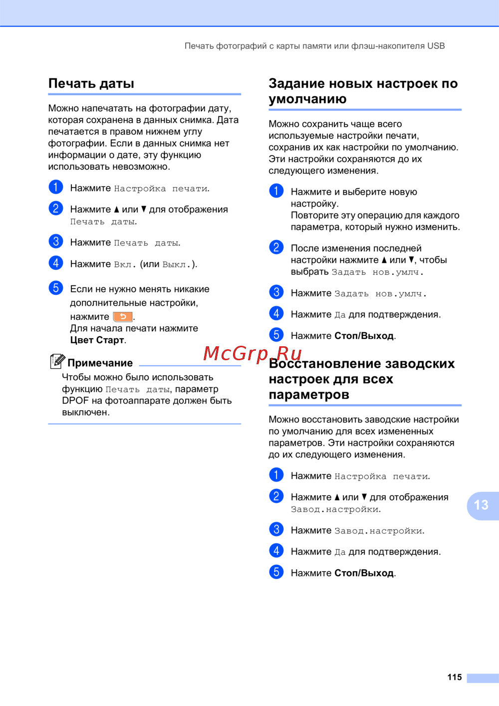 Brother MFC-990CW — инструкция по печати фотографий с карты памяти и USB-накопителя [127/241]