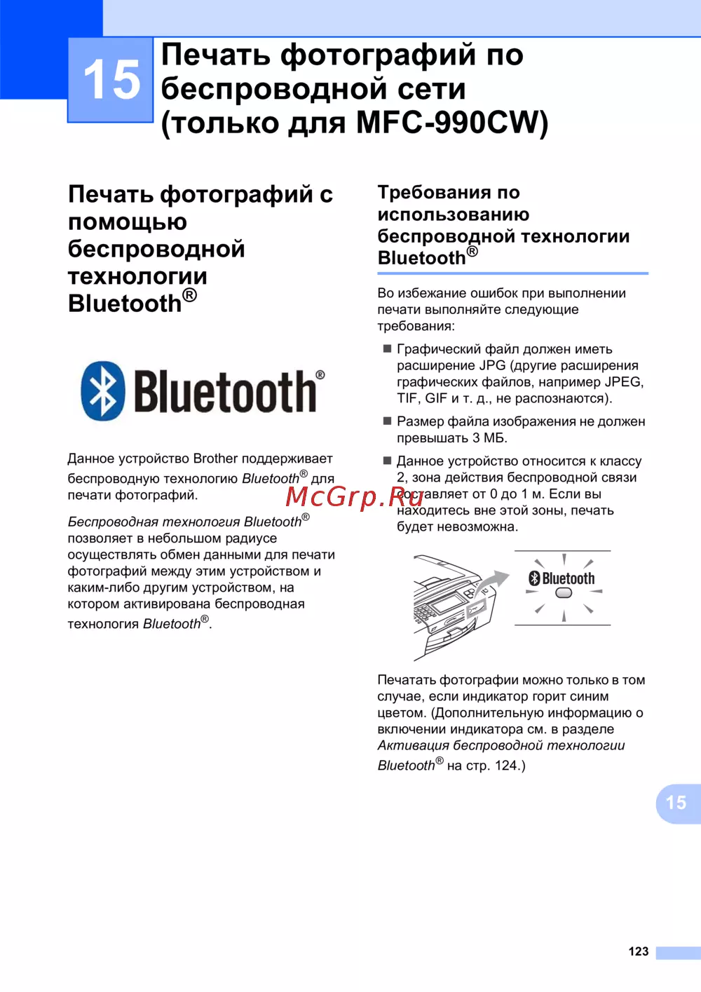 Brother MFC-990CW — беспроводная печать фотографий: требования и инструкции к использованию Bluetooth [135/241]