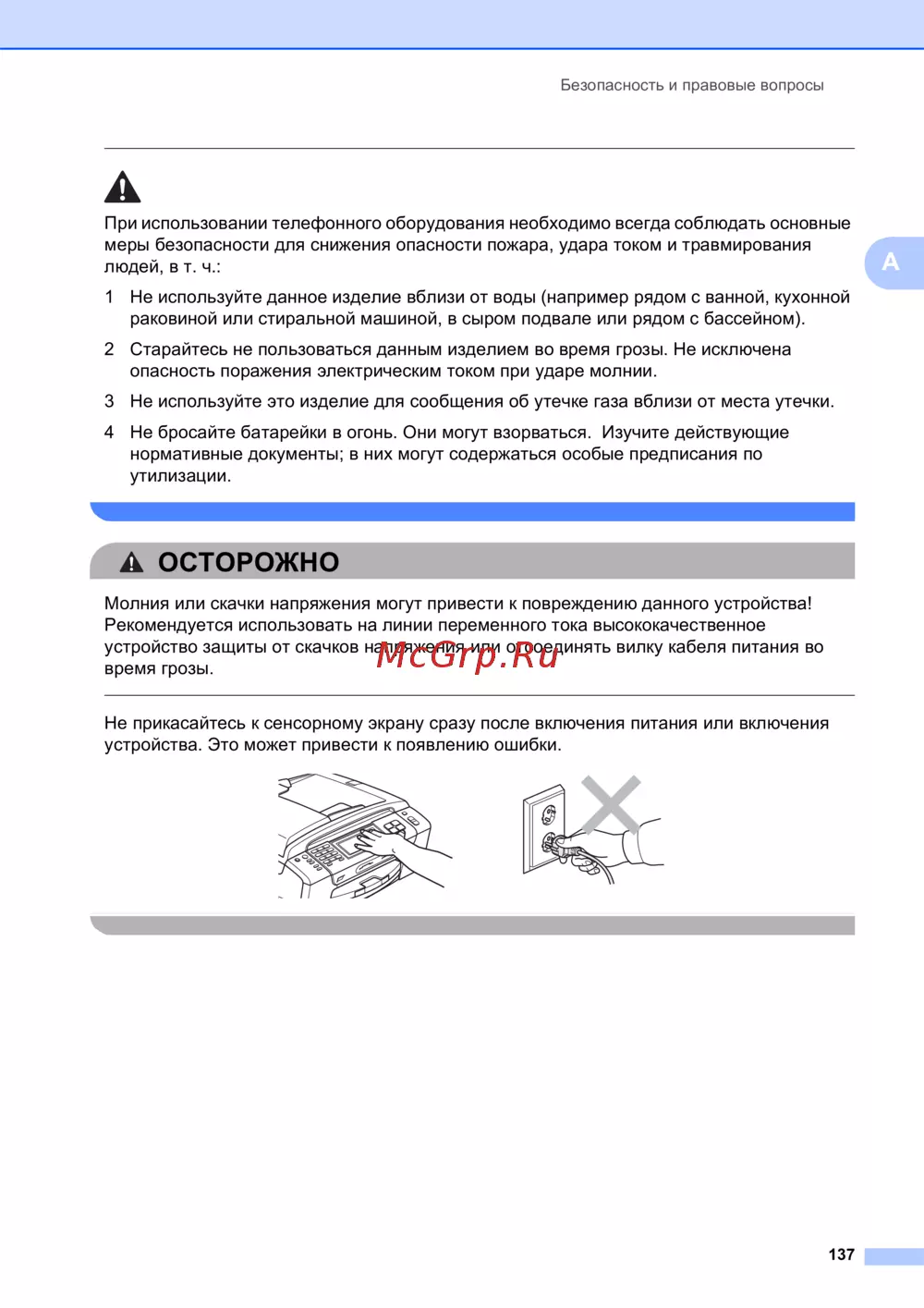 ![Brother MFC-990CW [149/241] Осторожно](/views2/1009231/page149/bg95.png)