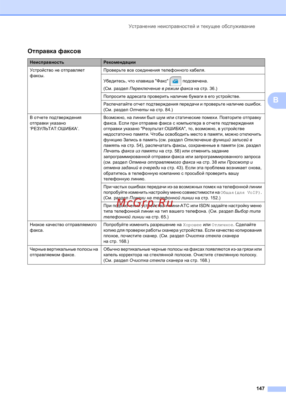 Brother MFC-990CW — устранение неисправностей факсов: советы и рекомендации [159/241]