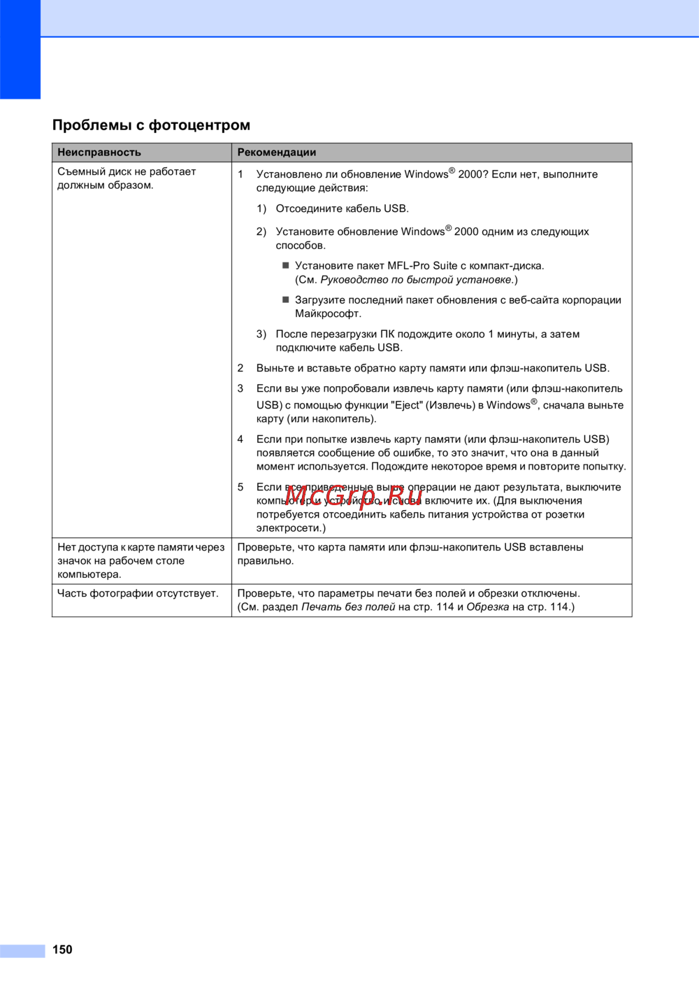Brother MFC-990CW — неисправность съемного диска: рекомендации по устранению неполадок [162/241]