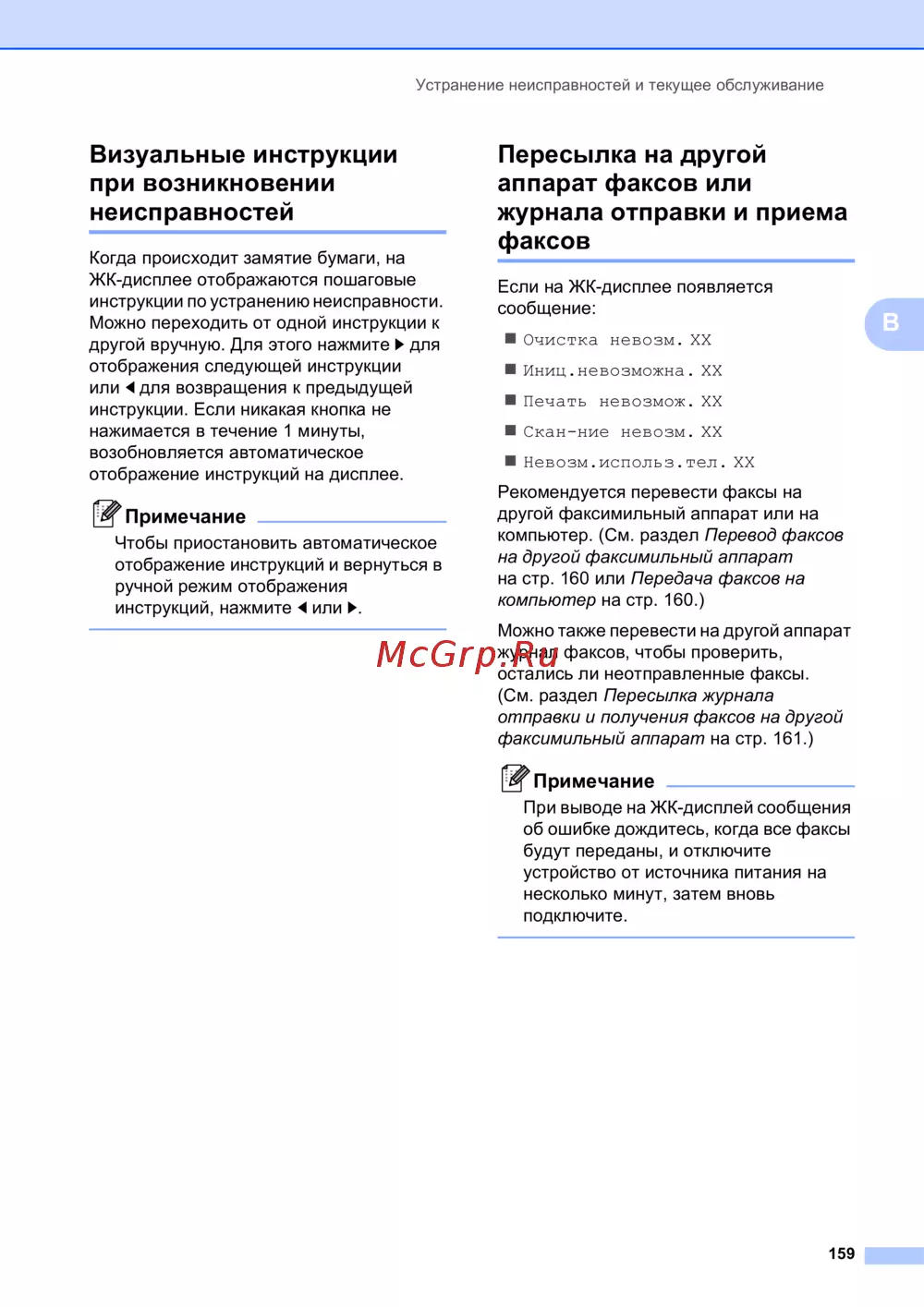 Узнайте, как использовать визуальные инструкции для устранения неисправностей при застревании бумаги и других ошибках. Также обнаучитесь пересылать факсы на другой аппарат или компьютер.