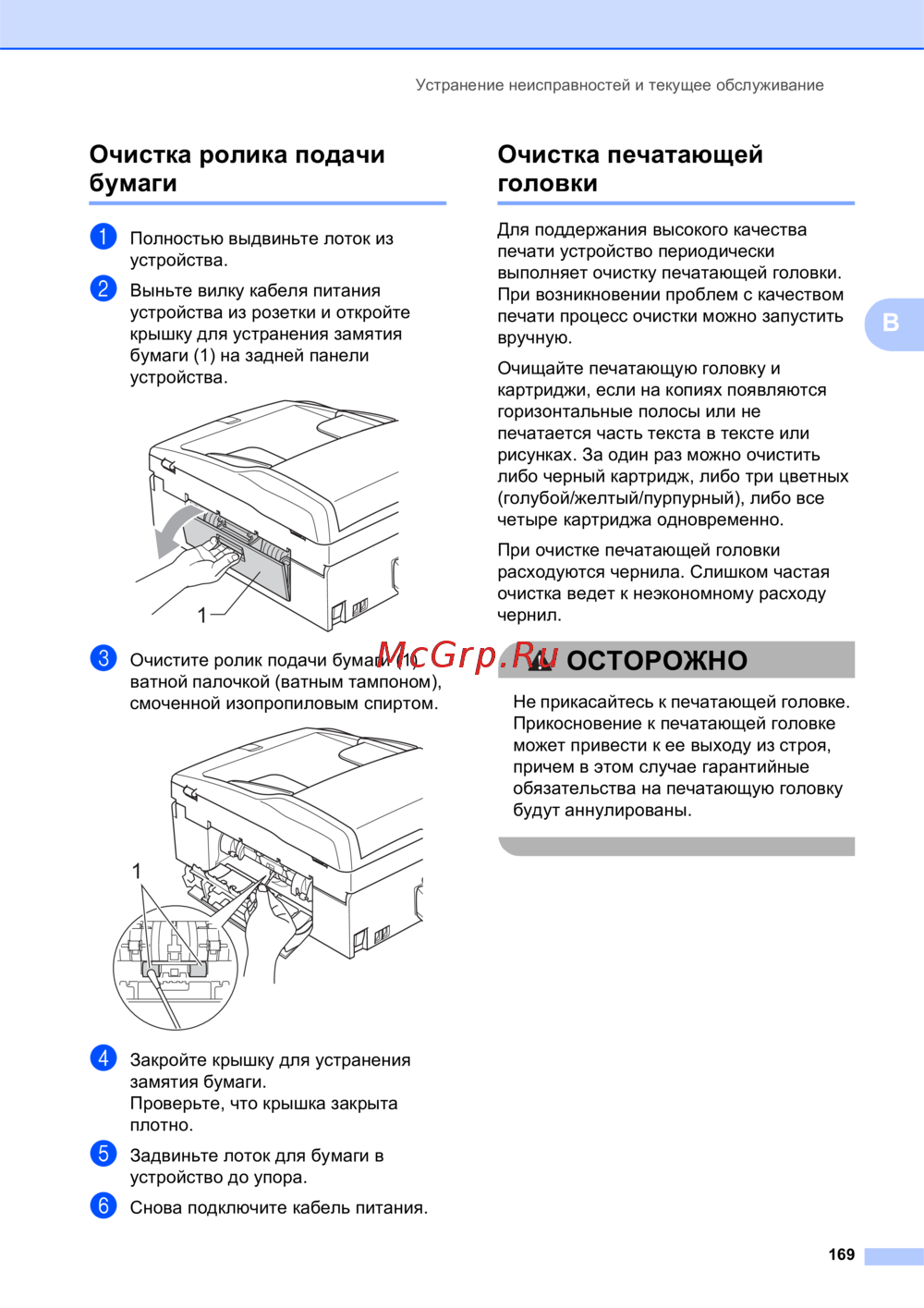 Brother MFC-990CW — инструкция по ремонту принтера: очистка ролика и печатающей головки [181/241]