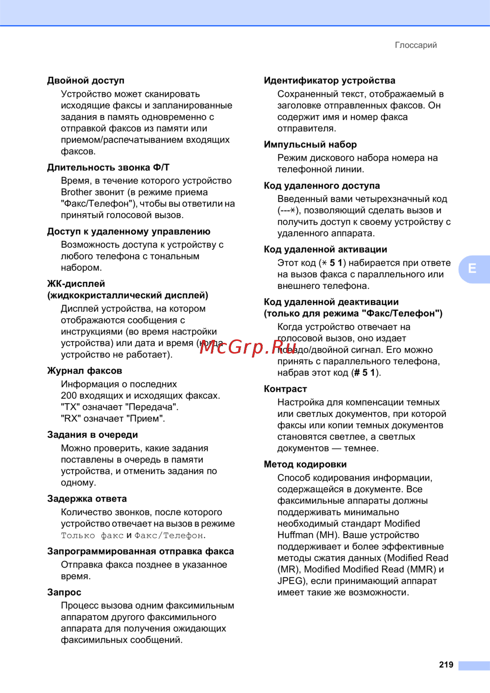 Brother MFC-990CW — глоссарий терминов для факсимильных аппаратов и их функций [231/241]