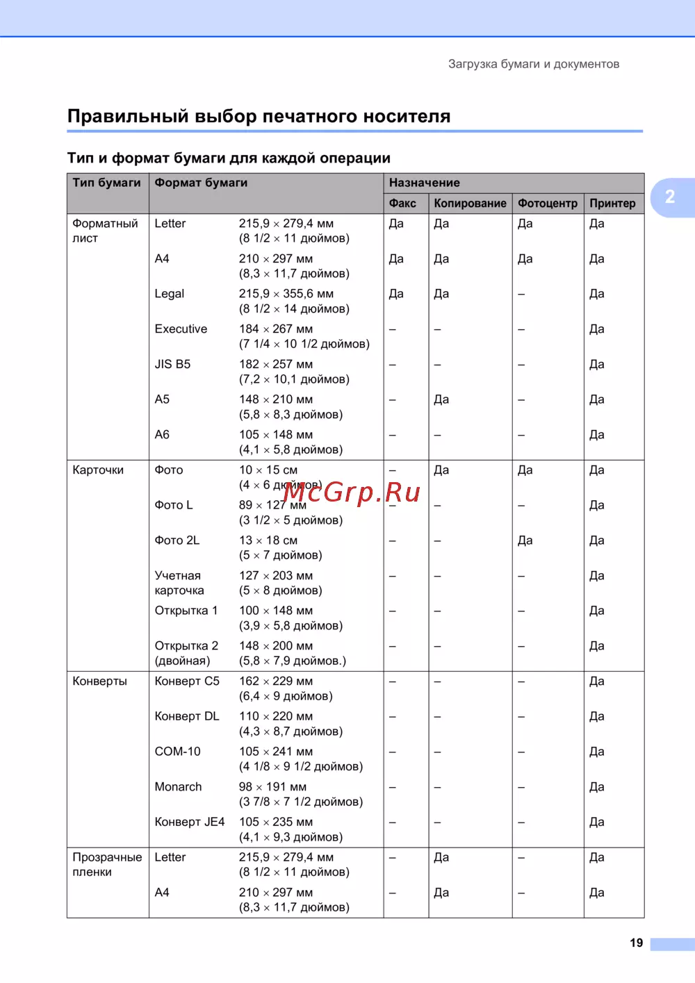 ![Brother MFC-990CW [31/241] Тип и формат бумаги для каждой операции](/views2/1009231/page31/bg1f.png)