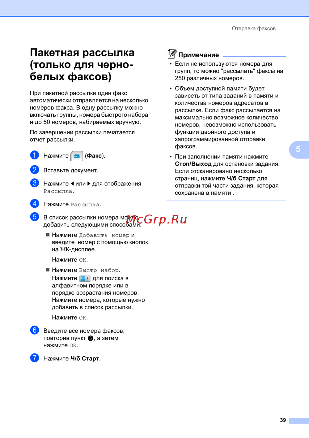 Brother MFC-990CW — эффективная пакетная рассылка факсов: пошаговая инструкция [51/241]
