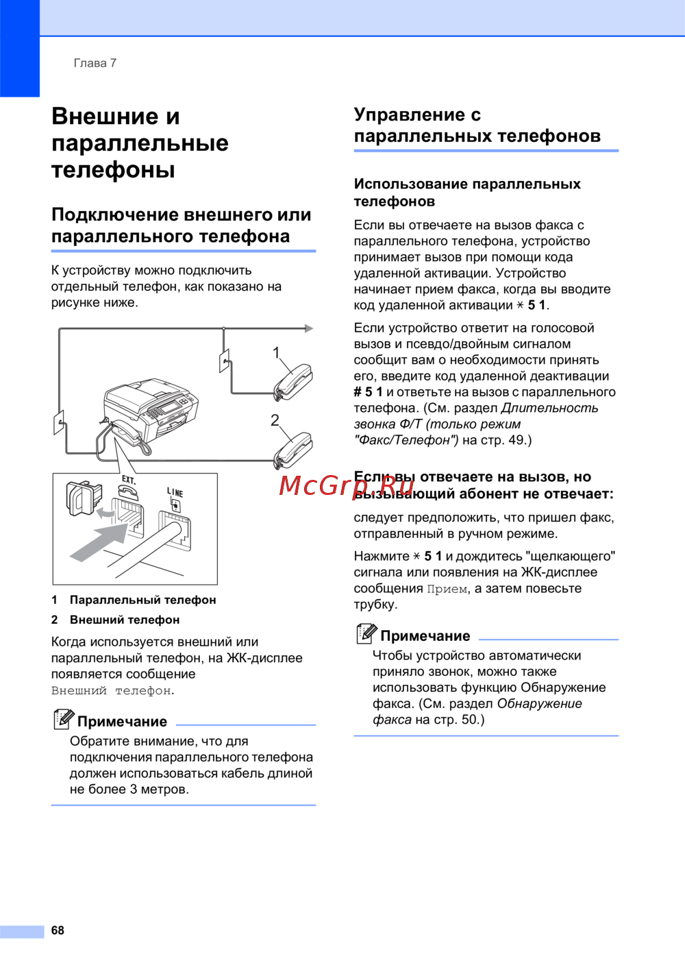 Brother MFC-990CW — инструкция по подключению внешних и параллельных телефонов к устройству [80/241]