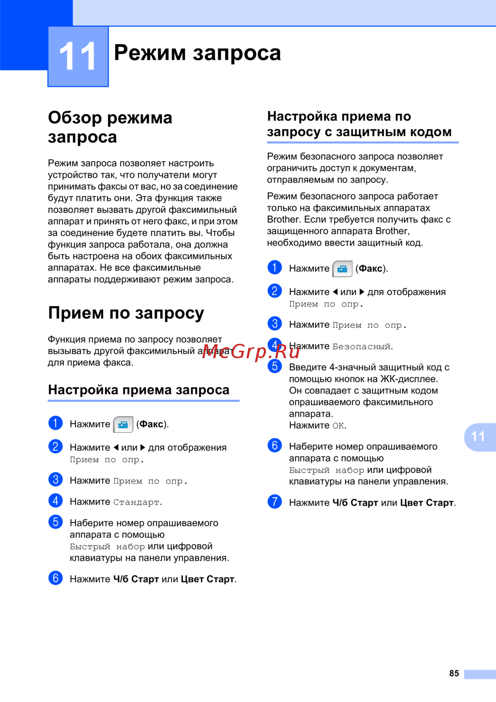 Brother MFC-990CW — настройка режима запроса факса: инструкция и особенности [97/241]