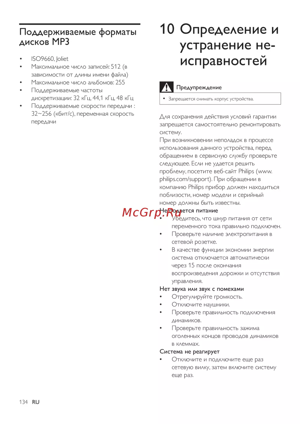Philips DTM5095/12 — поддерживаемые форматы дисков и устранение неисправностей [23/27]