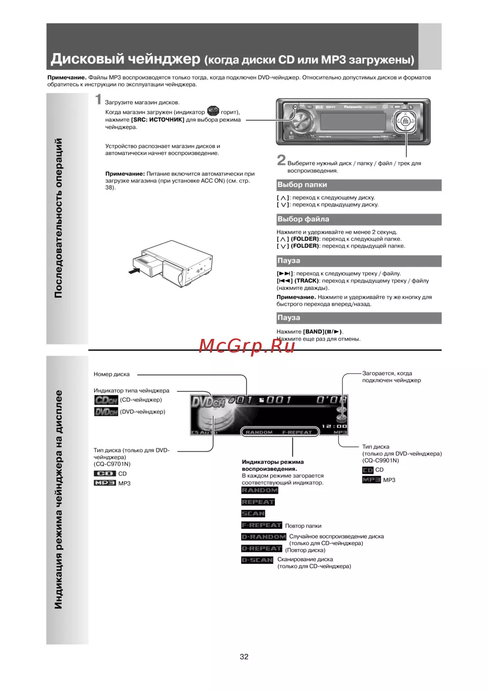 - Последовательность операций индикация режима чейнджера на дисплее p.34
