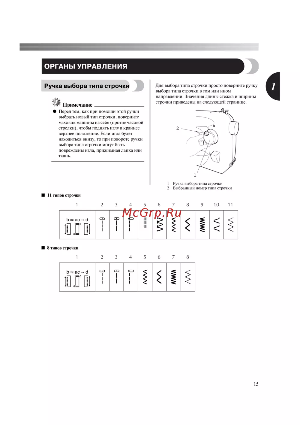 ![Comfort 15 [16/62] Ручка выбора типа строчки](/views2/1009257/page16/bg10.png)